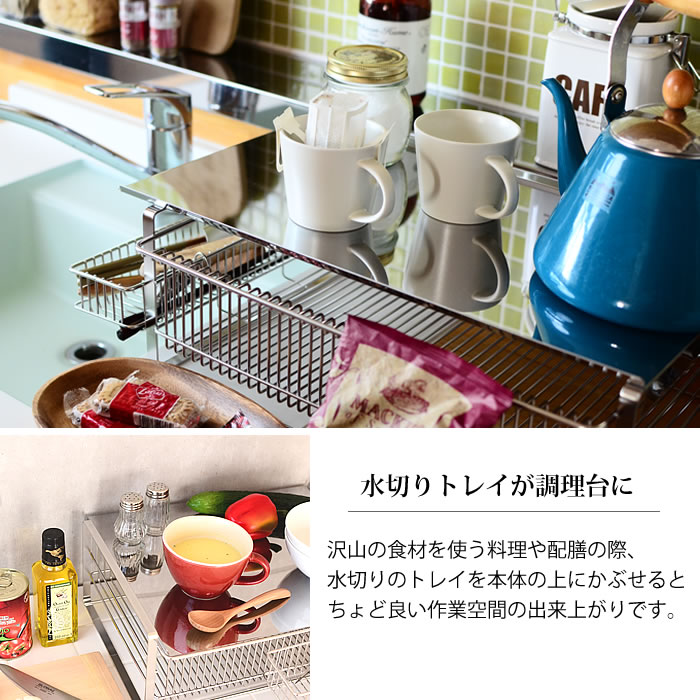 あす楽 シンクの 上 を使ってたっぷり収納 水切り 水切りかご 水切りカゴ 対面キッチン カウンター アイランド キッチン収納 狭い シンク スリム 伸縮 日本製 国産 自炊 家事 期間限定 ポイント2倍 300円off Sale 送料無料 シンク上 水切りラック 大容量 ワイド 型